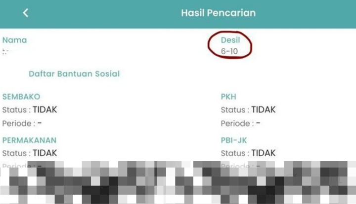 - Klik tombol “Cari Data” untuk melihat status desil Anda.